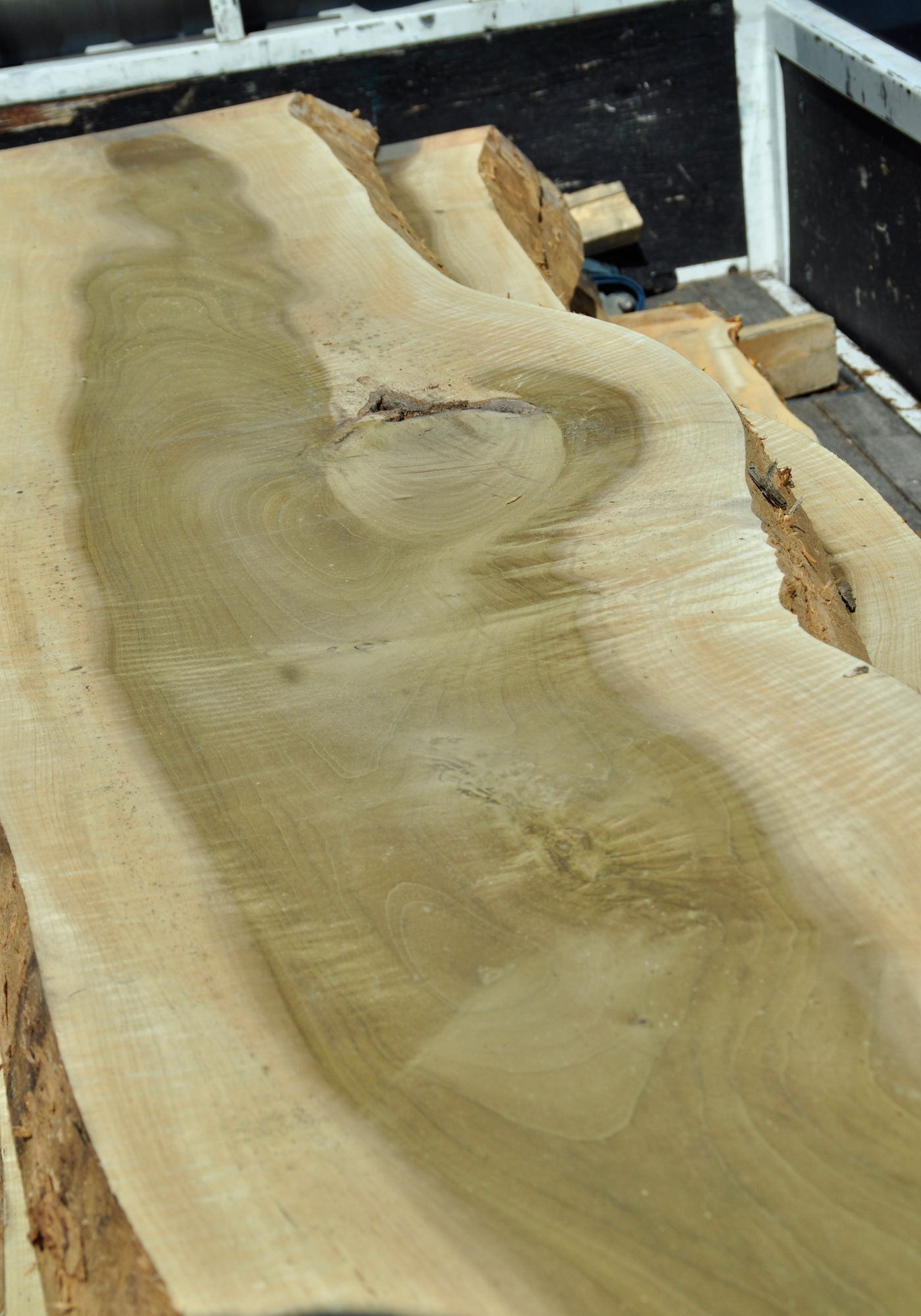 木材の狂いが少なく、加工のしやすさや仕上がりもよく優秀な木材として知られています。その見た目は淡白でくすんだ緑色と辺材との明瞭な境界線が特徴的です。