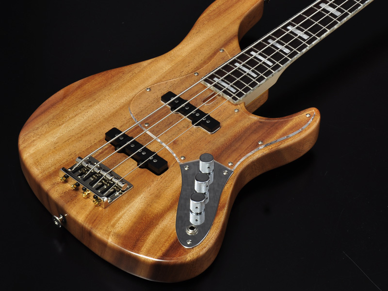 24フレット仕様に合せてカッタウェイを深く設計。演奏性と外観面のバランスを取ったシェイプに仕上げました。アカシア材をボディに使用し、同じマメ科の木材「ハワイアンコア」のような独特の木目が美しい、高級感あふれるモデルです。