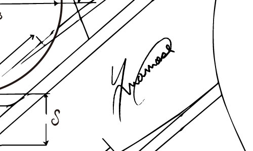 百瀬が製作するヘッドウェイカスタムギターのトップ板の裏側には必ず百瀬の直筆サインが入れられています。実際のギターに書き込まれる位置と同じ場所に百瀬のサインを入れました。