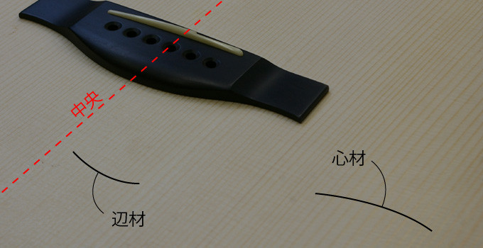 ■アディロンダック・スプルース:北米東部に分布。レッド・スプルースと呼ばれることもある。良く響き音量も大きく、弾き込む程に倍音が増していく、パワフルでクリアーな音色が特徴的。良質な材は入手困難であり、主に高級材としてボディトップに使用。