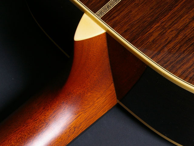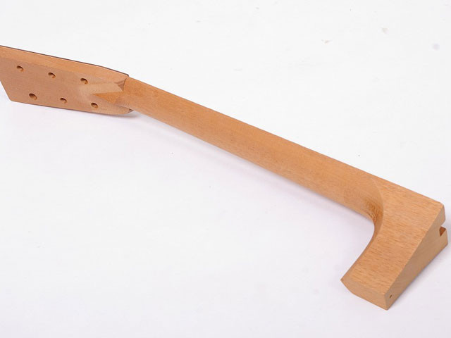 しかし、この2ピースネックはそれぞれの木の持つ収縮の差により、割れや、剥離などの原因となり、悪くするとジョ イント角度が変わってしまう場合もあります。1ピースネックの最大の利点は、木材の収縮に対して非常にシビアなネック部において、高い信頼性を持つ事で す。