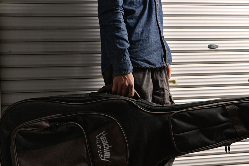ヘッドウェイをお持ちの方はご存知の通り、スタンダードシリーズ、ATBシリーズ、カスタムショップ(オーダー品)に付属するケースはハードケース。部屋での保管や車移動であればハードケースが便利ですが、徒歩や電車移動、自転車移動となるとハードケースは大変。。ギグバッグが必須ですよね。