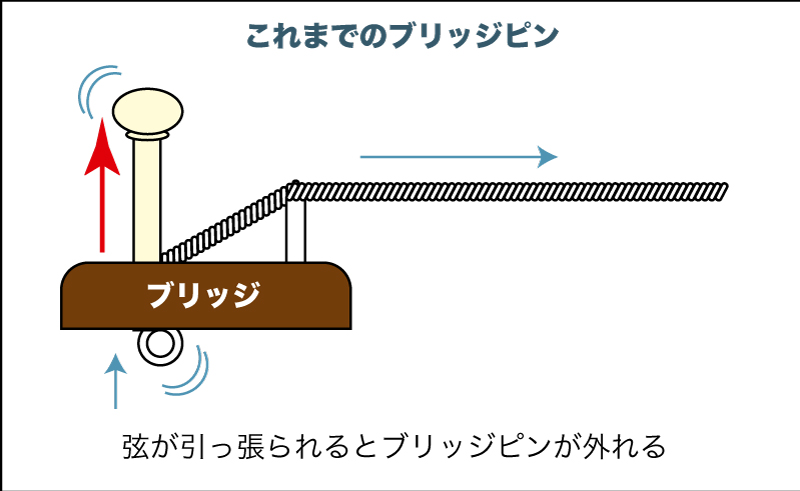 弦を張るときに、ちゃんとブリッジにボールエンドを押し込んだつもりが、弦を巻いている間にブリッジピンごとせり上がって「ポコン!!」と外れてしまうことありませんか??