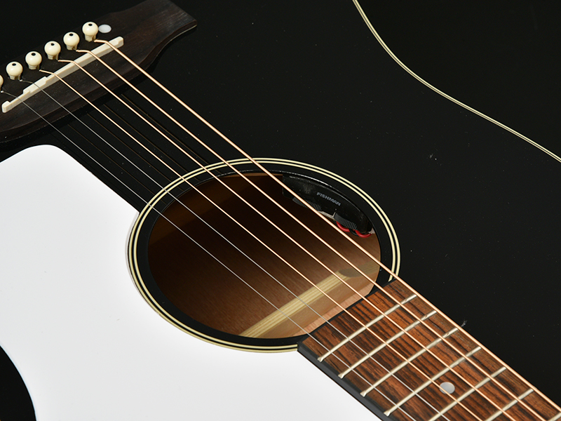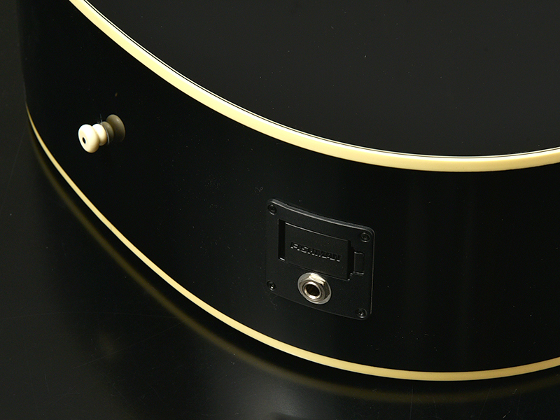 デフォルトでFishman Sonitoneピックアップを搭載しています。サウンドホールにはコントロールパネルが設置され、ボリュームとトーンをダイヤルで調整することができます。