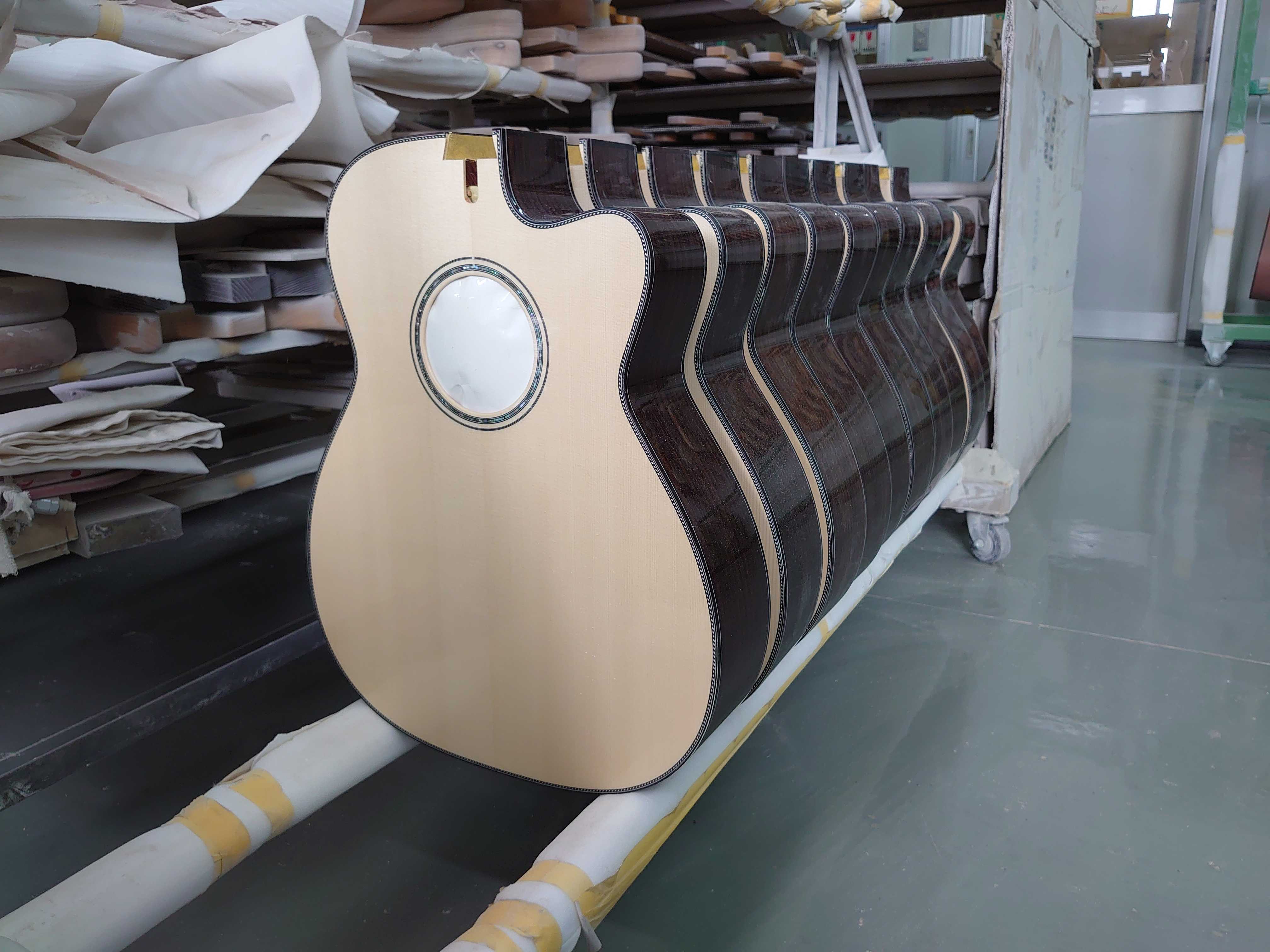 ▲塗装場に並ぶ今回のコンセプトモデル。職人の技から生み出されるHeadwayの「Thin Urethane(シンウレタン)」塗装はぜひ楽器店で見かけた際に注目してみてください。