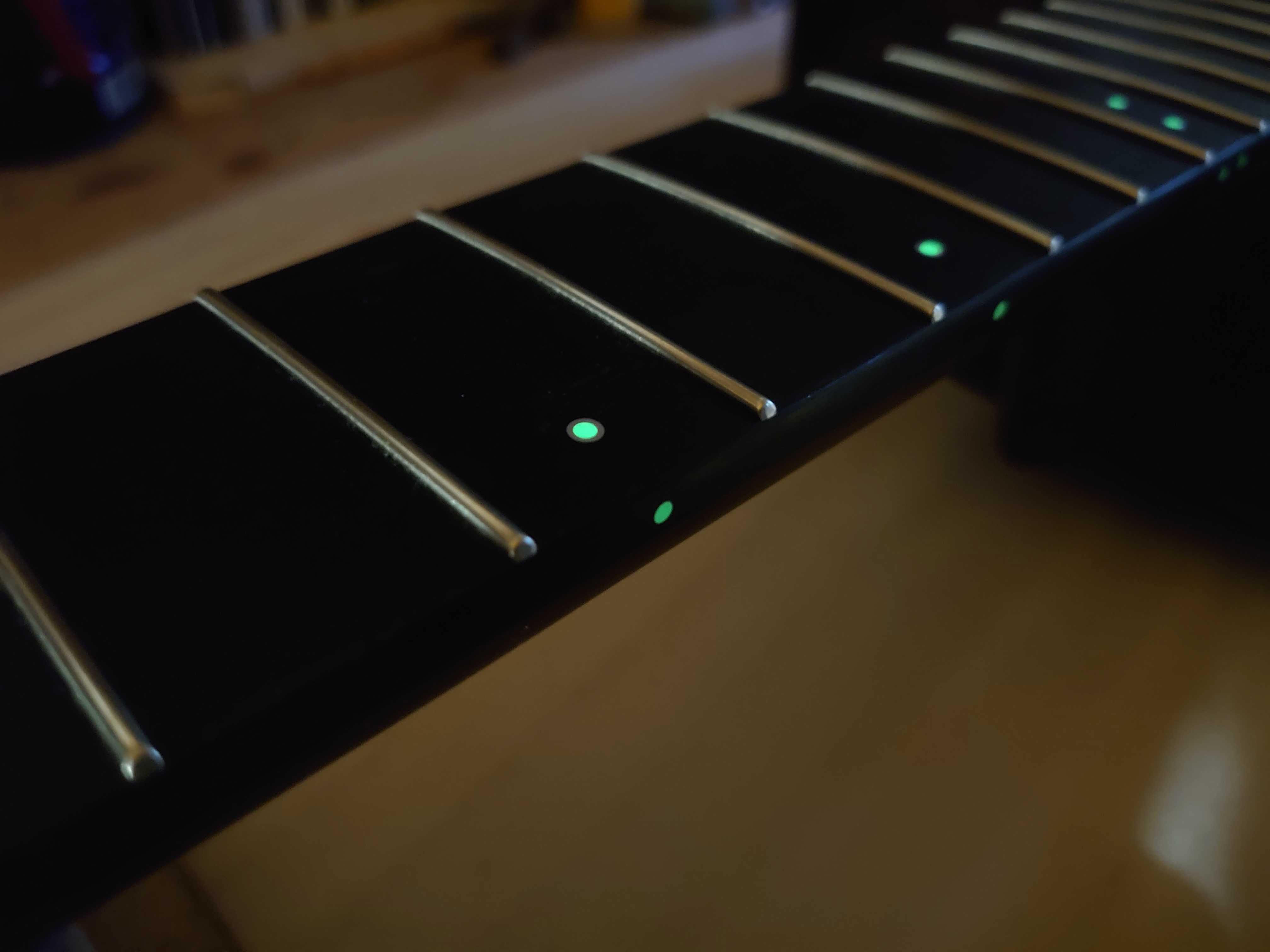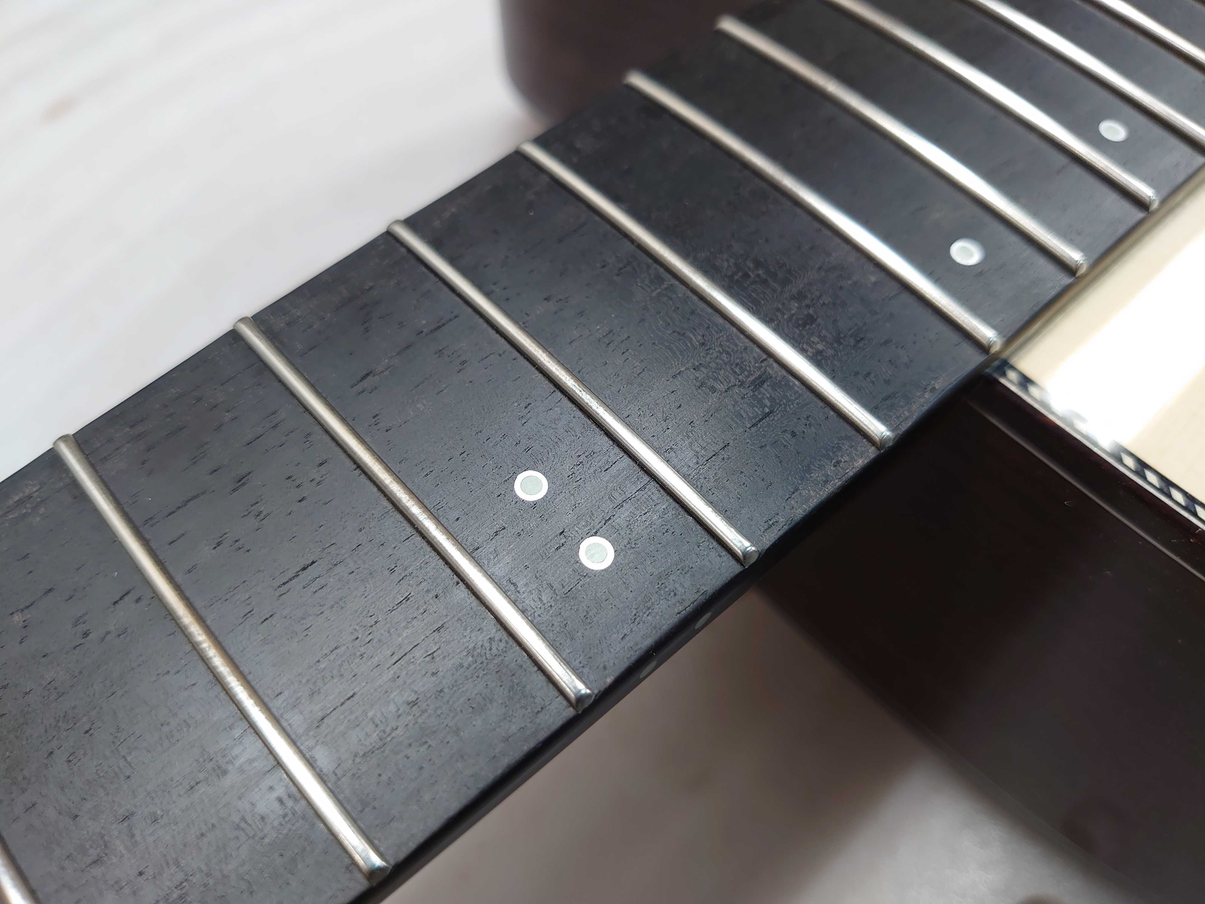 ポジションマークの配置にも工夫をしており、小さ目のドットで端に入れることで存在感を出しすぎないようにしながら、ライブステージなど暗い場所でもポジションがわかりやすいようになっております。