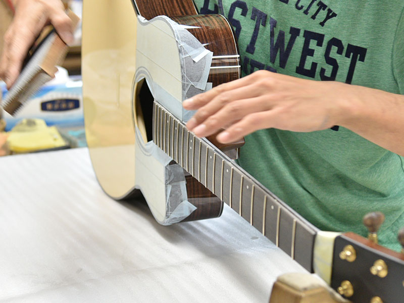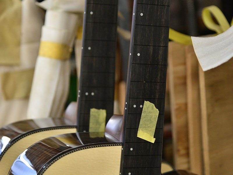 その制作風景からこだわりや制作秘話をお届けするこの企画ですが、第三回の今回はこだわりの塗装と指板ポジションマークさらにフレットにも触れていきますよ!
