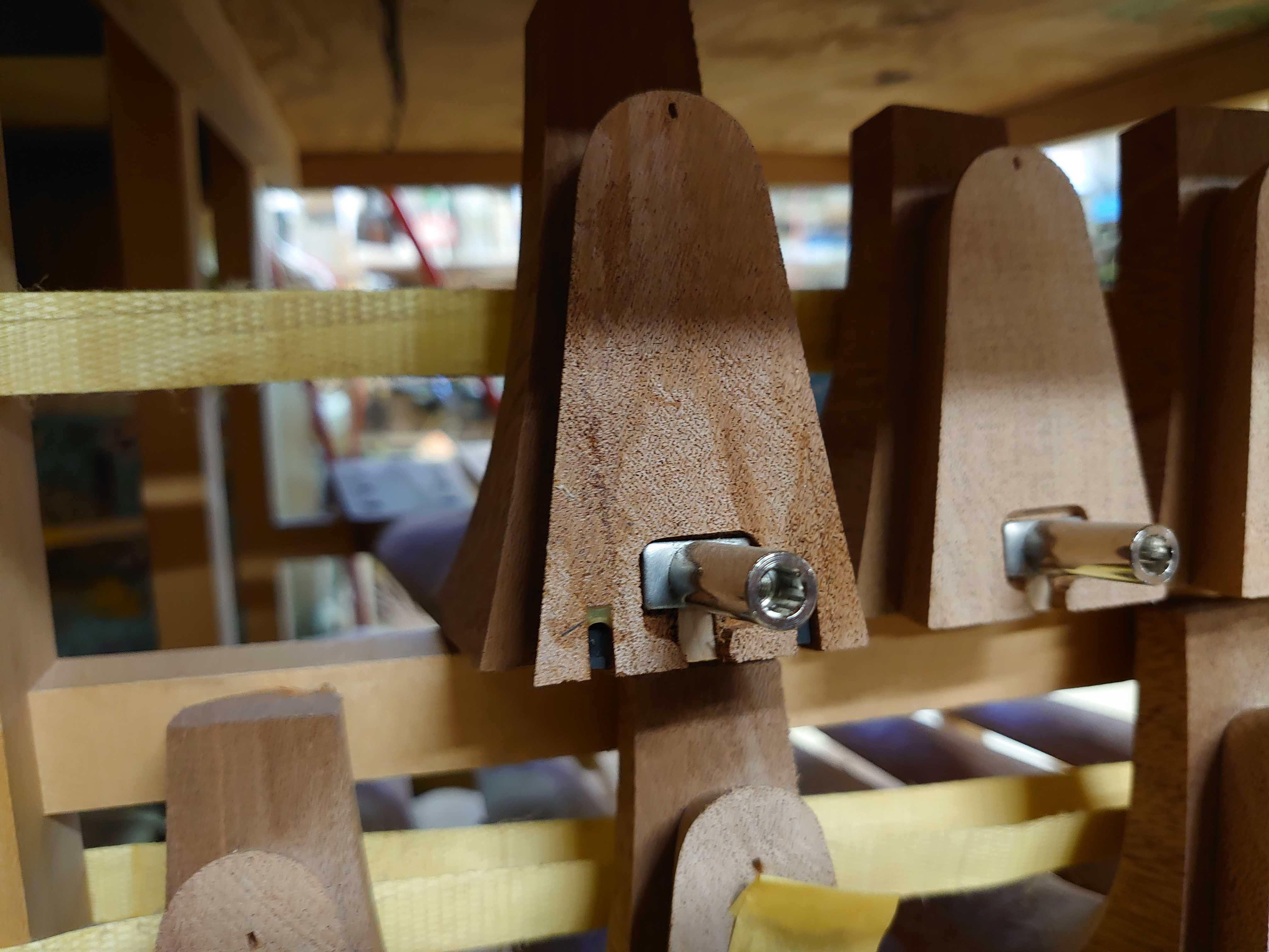 ▲型にはめ込まれ組み合わせる準備の整ったサイド材。これからここにトップ材・バック材を組み合わせていく。