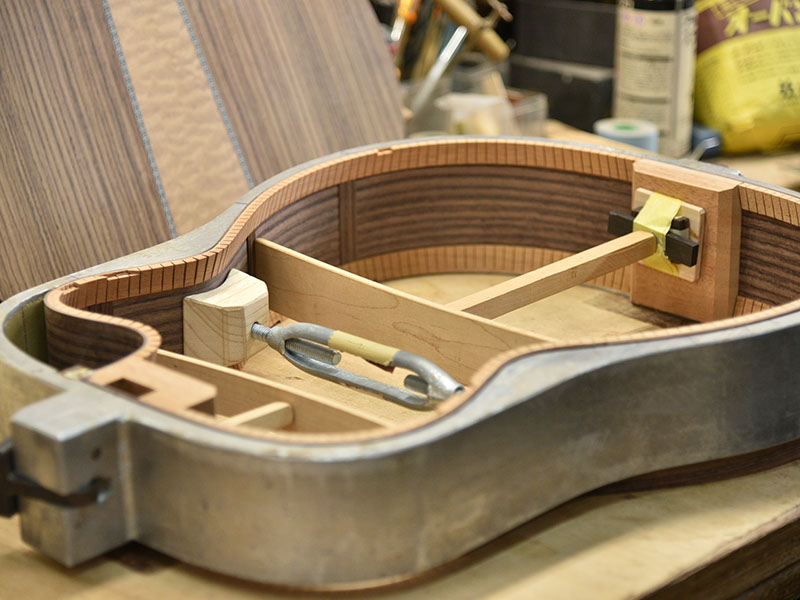 その制作風景からこだわりや制作秘話をお届けするこの企画ですが、第二回はボディを箱にする工程とネックについてをご紹介いたします。