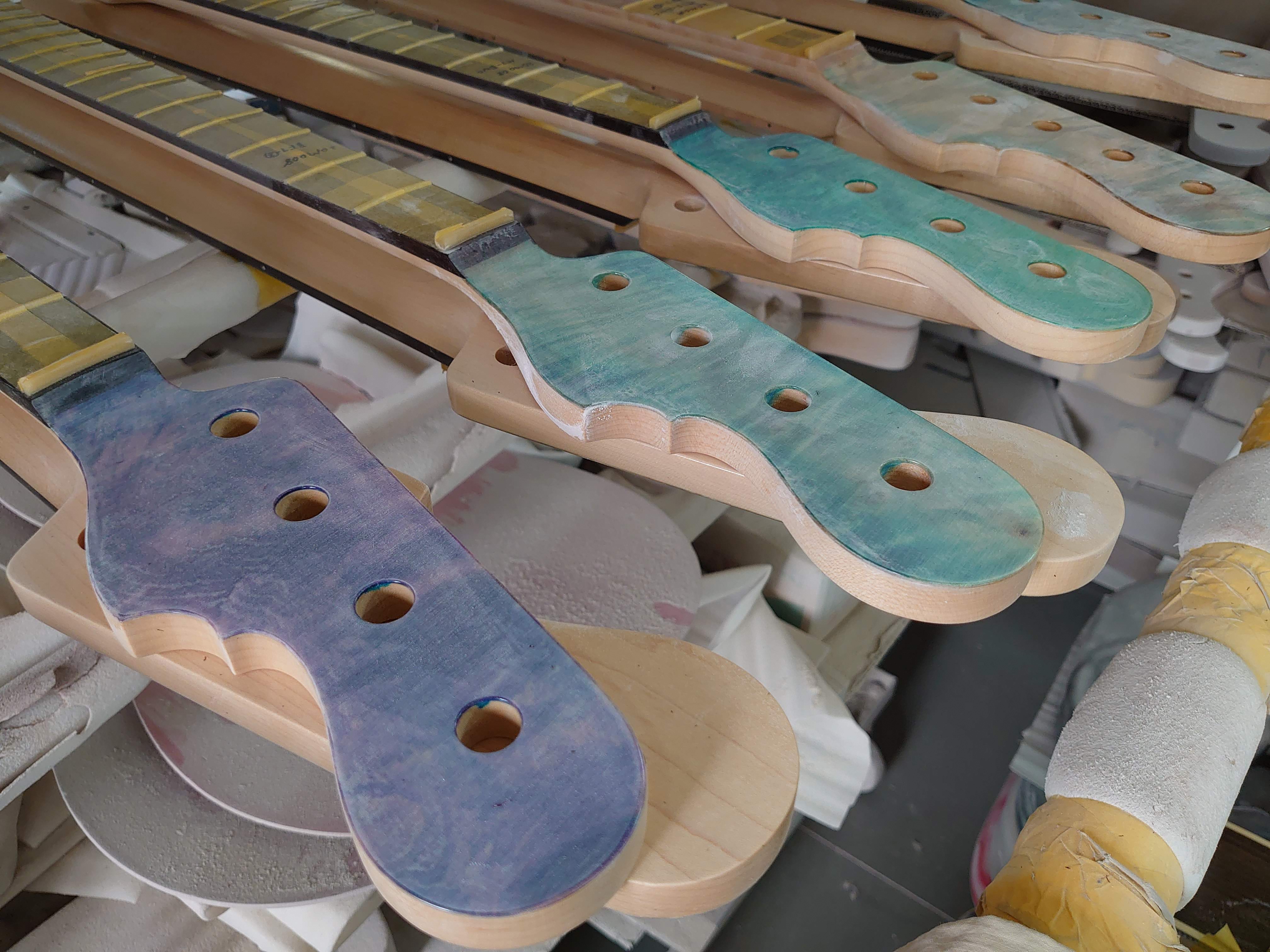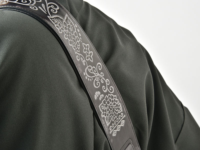 There are many Japanese phrases that involve flowers such as “The cherry blossoms scatter” or “The camellia falls” and among them, the phrase “In fact, the hydrangea almost never withers” is a phrase that inspired me this time. The calyx of the hydrangea, which survives throughout the winters, it turns brown and cloudy but retains its beautiful shape. People try to resist the signs of age, with makeup, training, and so on. That kind of effort in itself is as beautiful as a hydrangea. The beauty of the strap, which holds the guitar's playing posture, draws its beauty from this concept.