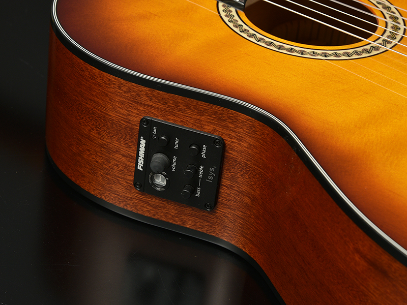 ナット位置で48mmの狭めのネック幅を採用し、弦高も弾きやすさを重視して低めに設定しています。普段アコースティックギターやエレキギターをメインで使用している方でも比較的握りやすく設計されており、ガットギターのサウンドを気軽にお試しいただけます。