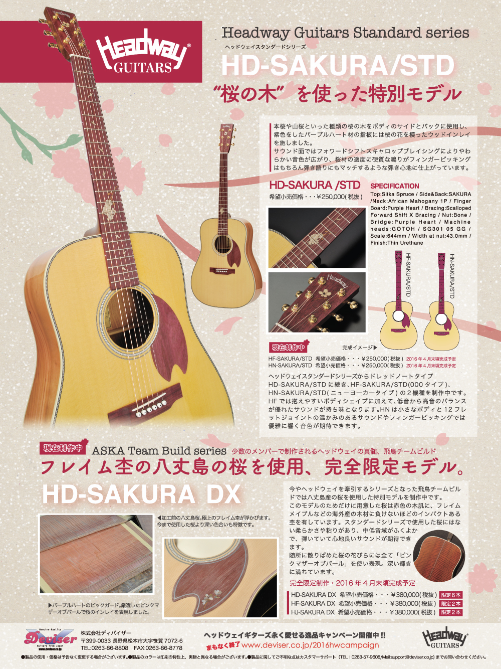 本日4月27日発売「アコースティックギターマガジVOL.68」にHEADWAY Standars series HD-SAKURA/STDが掲載されております。