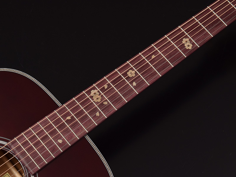ボディのサイドバック材には桜の木を使用しています。適度に優しいニュアンスを持つ桜ギターのサウンドですが、ARS(アドバンスドリアシフト)Xブレイシングの影響からか、立ち上がり良く、音の粒立ちも揃いました。
