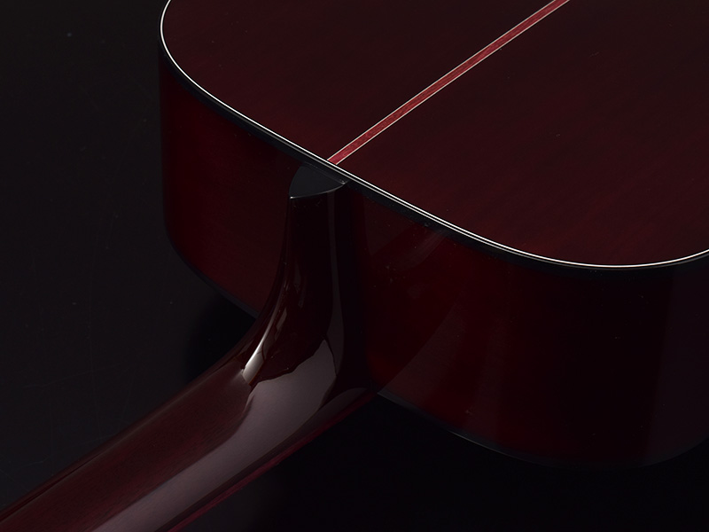 基本となるボディの形状はHFと同様くびれの深いアウトライン。そこへ645mmスケールでネックを組むHOMシェイプを採用しました。深胴ボディを採用し、抱えやすいながらもストロークしたときの鳴りの深さ、豊かな低音が魅力です。