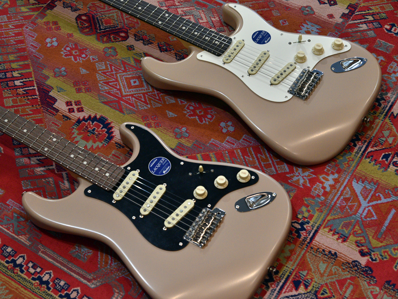 淡い茶色のミリタリーカラーのタン。こちらは黒1Pとエイジドホワイト1Pの2種類のピックガードの仕様を用意しました。