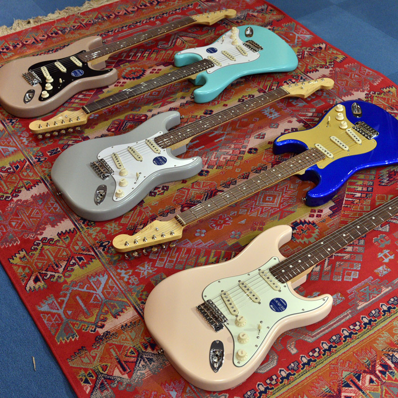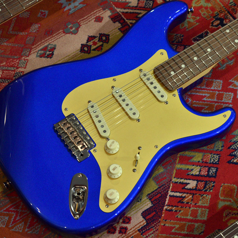 スタイリッシュなブルーのメタリックカラー。アノダイズドピックガード仕様。