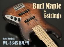 上位機種ハンドメイドシリーズWOODLINEの演奏性を継承したコストパフォーマンスモデルWL-534モデルに新製品「WL-534S BM/M」が登場しました。ボディトップには「バールメイプル」を採用しており、華やかな外観に仕上がっています。また、バールメイプルの杢目を活かすグラデーションカラーで仕上げています。