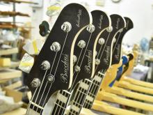 Bacchus Handmade series 「WOODLINE」の直系モデルとしてディンキーシェイプボディ、ターボスイッチ搭載というスペックを持つGlobal seriesのWL-434 ASHの特別版。指板のポジションマークにLEDを埋め込み、Front VolumeノブをプルアップすることでLEDが点灯します。
