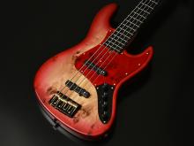 今回のモデルは、ボディトップに「バールポプラ」を採用しました。木の根付近の材は瘤杢(こぶもく)が多く見られ、生命力に満ちたその外観は、見るものを惹きこむ力があります。また、カラーは全3色をラインナップしています。バールポプラの杢を活かすバーストカラーで仕上げました。各ボディカラーに合わせたピックガードを採用しており、ポジションマークにはブラスリングを採用しています。パーツカラーはBLACK & GOLDを採用し、高級感あふれる上質なモデルに仕上がっています。