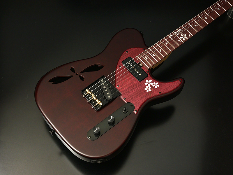 Sakura Hollow Body:飛鳥工場で使用される和材のなかでも特に人気の高い「桜」をボディに採用しました。ボディ低音側を大きくくり抜いたホロウ構造を採用しており、桜の花びらをモチーフとしたホールが印象的なモデルです。ポジションマークなど随所に桜のモチーフを入れ、見た目も華やかな楽器に仕上がりました。桜の季節は短いですが、桜モデルなら年中好きな時に楽しめます。