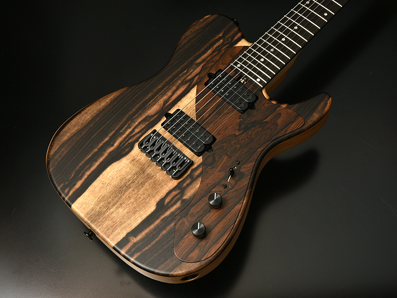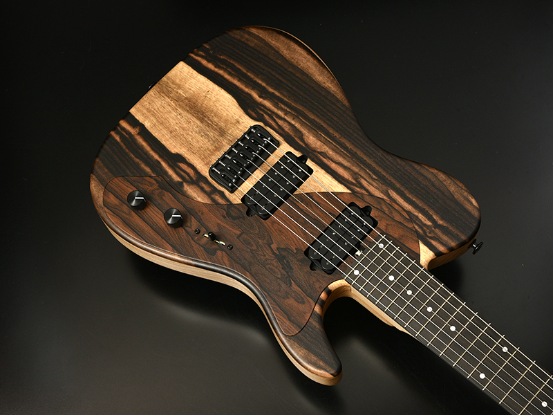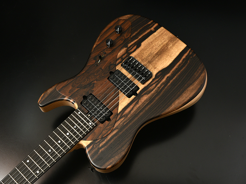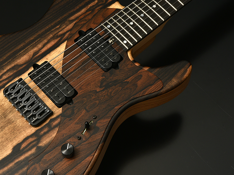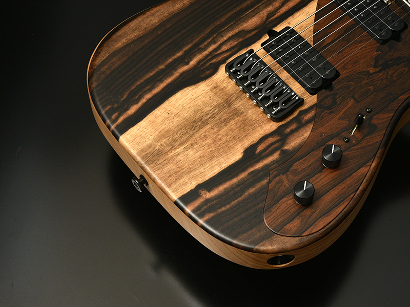 Kurogaki:ボディトップには日本の銘木"黒柿"を採用。水墨画のような紋様は、日本古来より庶民から公家や武家まで、多くの人々が魅了されたといわれています。 「黒柿」とよばれるものは、柿の古木の数万本に一本に現れるとされ、その希少性と美しさから、あらゆる工芸品の中でも最高級に位置するものに使用される「銘木中の銘木」とも呼び声高い希少木材です。
