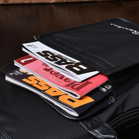 大きくて厚みのある外ポケットには、分厚いA4サイズの雑誌や譜面などもラクラク入ります。