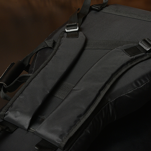 ケースだけでなく肩のストラップにもクッション材が入っており、肩への負担を軽減します。