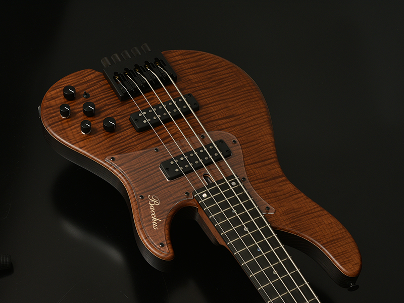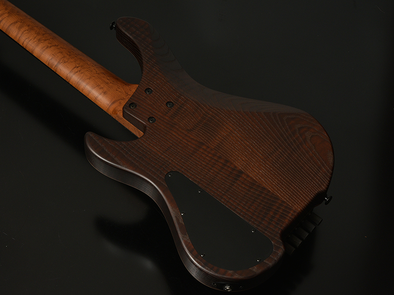 Bacchusのベストセラーエレキベース「WOODLINE517」を基準に、Hipshot Headless Bass System Bを搭載したヘッドレスベースを製作しました。新たに描き起こしたボディアウトラインは、レギュラーモデルBacchus WOODLINEが持つディンキーシェイプ、シャープなボディエッジの印象を残しながら、ヘッドレスモデル特有の違和感を最小限に抑えるボディサイズ、ボディバランスを実現。24Fまでスムーズに演奏できる深いカッタウェイも自慢です。ヘッドレスベースの新たな指針となるポテンシャルを秘めた、高い完成度の意欲作がついに完成!!ボディからネックまで随所に熱処理を施したサーモウッドを採用したレアモデルです。
