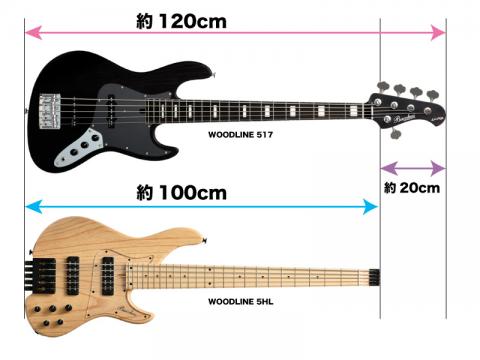 通常のWOODLINEが120cm近い全長であるのに対して、WOODLINE HEADLESSの全長は約100cmであり、一般的なエレキギターに近いサイズです。数値にするとわずか20㎝の差ですが体感的には大きな差であり、例えばステージの小さなライブハウスや機材で一杯のスタジオなどにおいての使用時に、よりストレスが少なく演奏に集中することが可能です。またヘッドが無い分軽量でもあり、長時間の演奏時や持ち運んでの移動時に大きなメリットを感じることができます。