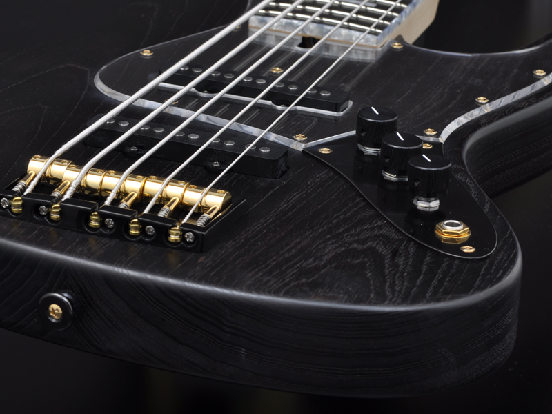パッシブモデルのコントロールは一般的なJBスタイルの2Vol、 1Tone。もちろん従来のTurbo Switchも搭載しています。トーンノブをプルアップすると二つのピックアップをシリーズ接続し、ハムバッキングPUの様な太いサウンドを作ることが出来ます。(ターボスイッチをONしている間のヴォリュームコントロールはFront Volノブで行い、Rear Volノブはバイパスされます。)