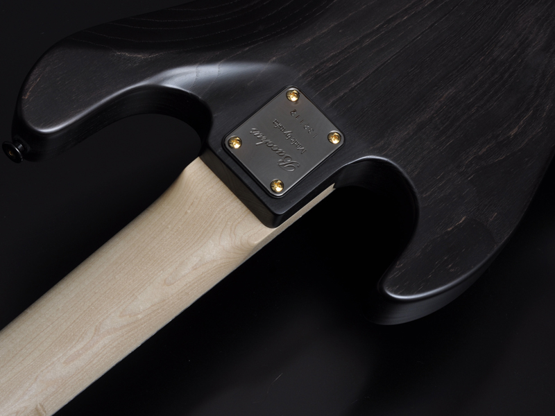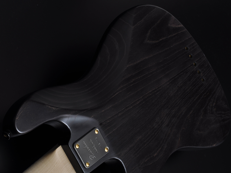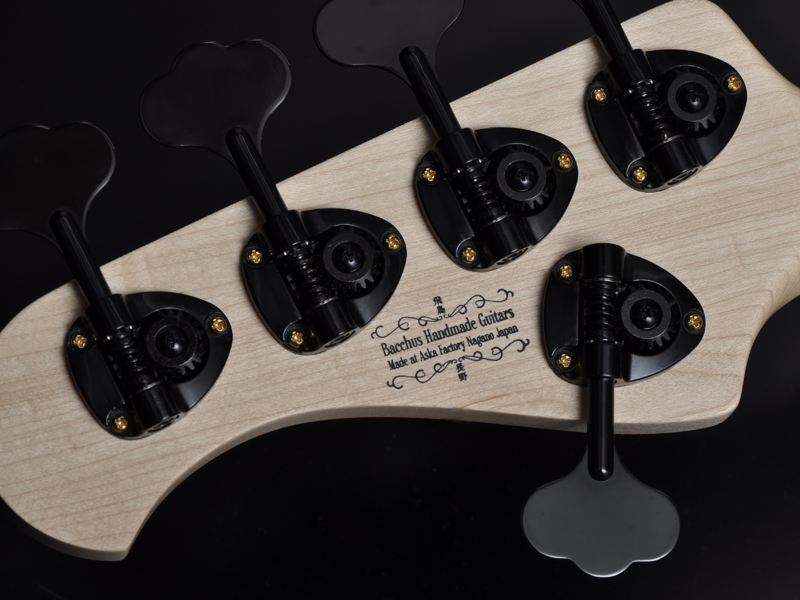 BACCHUSブランド初期からのオリジナリティの一つ「オイルフィニッシュ」。通常のトップラッカー仕上げなどとは塗装工程の作業が異なり、その作業は着色、磨きといったそれぞれの作業に対して精度の高さを求められます。オイルフィニッシュはその仕上がりがマットすぎても光沢が出すぎても木材の質感を引き出すことが出来ません。長い期間にわたってこだわり続け、試行錯誤を重ねた結果としてのBACCHUSオリジナルオイルフィニッシュ。このボディの上でブラックとゴールドのコンビネーションパーツが一際輝きます。