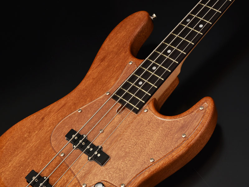 ピックガードはクリアを採用。マッチングヘッド仕様に仕上げています。
