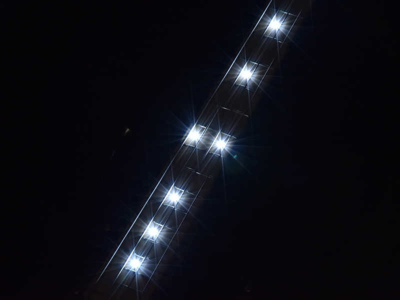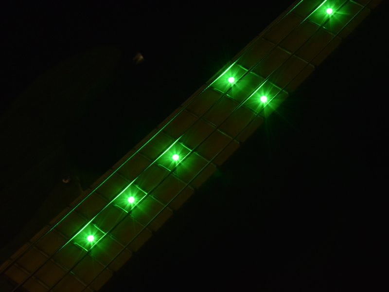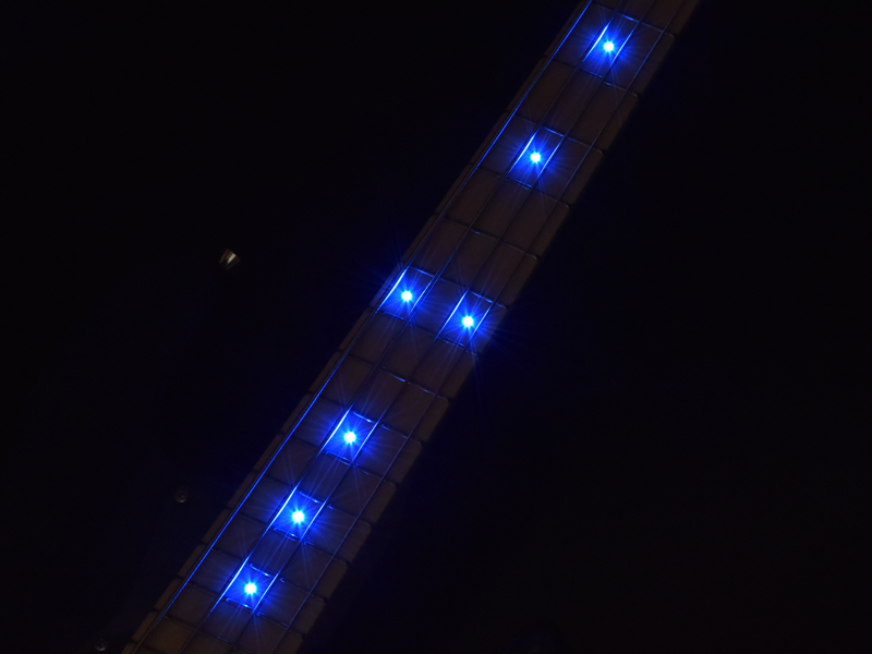 Bacchus Handmade series 「WOODLINE」の直系モデルとしてディンキーシェイプボディ、ターボスイッチ搭載というスペックを持つGlobal seriesのWL-434 ASHの特別版。指板のポジションマークにLEDを埋め込み、Front VolumeノブをプルアップすることでLEDが点灯します。