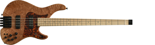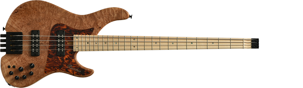 Headless WOODLINE:Bacchus HANDMADE Series"WOODLINE"にヘッドレス仕様が限定で登場。ボディトップにはエキゾチックウッドを採用し、ボディバックはアッシュ材を採用しています。ウッドラインのシャープなボディアウトライン、絶妙なコンターラウンドはそのままに、ヒップショットのヘッドレスベースシステムとアギュラープリアンプを搭載したハイグレードモデルです。