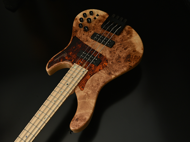 Headless WOODLINE:Bacchus HANDMADE Series"WOODLINE"にヘッドレス仕様が限定で登場。ボディトップにはエキゾチックウッドを採用し、ボディバックはアッシュ材を採用しています。ウッドラインのシャープなボディアウトライン、絶妙なコンターラウンドはそのままに、ヒップショットのヘッドレスベースシステムとアギュラープリアンプを搭載したハイグレードモデルです。