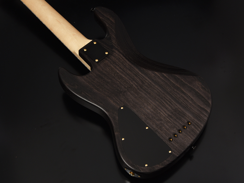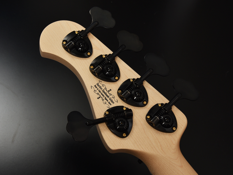BACCHUSブランド初期からのオリジナリティの一つ「オイルフィニッシュ」。通常のトップラッカー仕上げなどとは塗装工程の作業が異なり、その作業は着色、磨きといったそれぞれの作業に対して精度の高さを求められます。オイルフィニッシュはその仕上がりがマットすぎても光沢が出すぎても木材の質感を引き出すことが出来ません。長い期間にわたってこだわり続け、試行錯誤を重ねた結果としてのBACCHUSオリジナルオイルフィニッシュ。このボディの上でブラックとゴールドのコンビネーションパーツが一際輝きます。