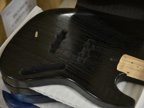 「まず、RayRossブリッジは通常のブリッジと取り付け位置が違うため、取り付けの際オクターブがずれてしまわないよう位置出しは慎重に行っています。