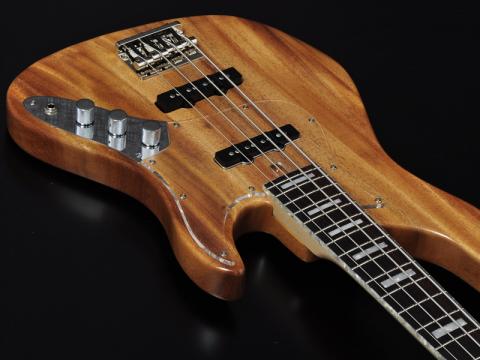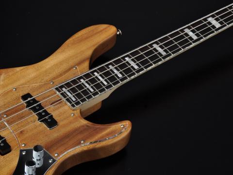 24フレット仕様に合せてカッタウェイを深く設計。演奏性と外観面のバランスを取ったシェイプに仕上げました。アカシア材をボディに使用し、同じマメ科の木材「ハワイアンコア」のような独特の木目が美しい、高級感あふれるモデルです。