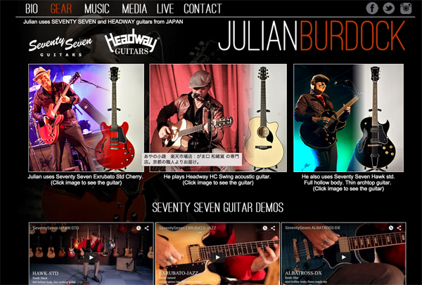 SeventySeven Guitars、Headway Guitarsのギターを使用する、ギタリストJulian Burdockのウェブサイトがリニューアルされました!!
