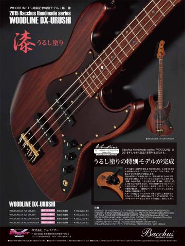 Bacchus Handmade seriesのWOODLINE DX URUSHIを掲載。アッシュボディを伝統的な「拭き漆」という塗装で仕上げました。ブラウンスモークのピックガードも相まって独特の雰囲気。