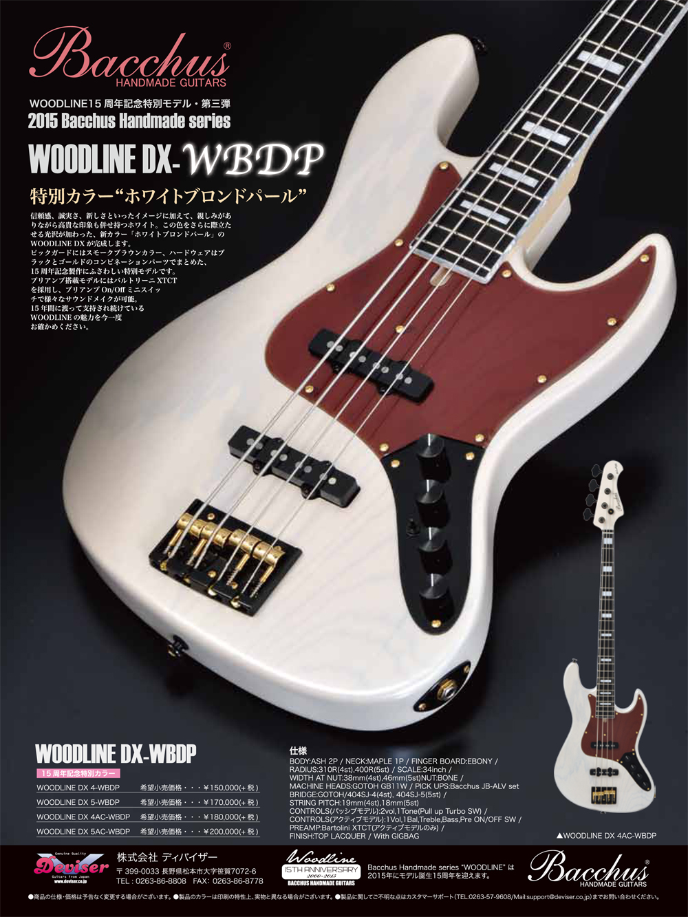 Bacchus Handmade seriesの特別カラー「ホワイトブロンドパール」が新登場。
