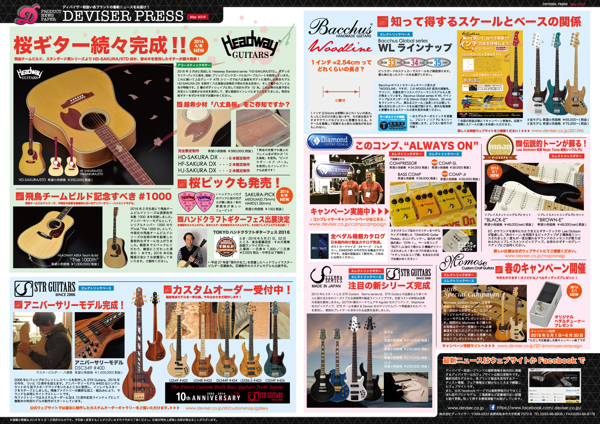 ディバイザー取扱いブランドの網羅する広告を掲載。Headway Guitarsをはじめ、Bacchus、Momose、STR Guitarsなど最新情報・最新トピックを各種掲載紙ました。