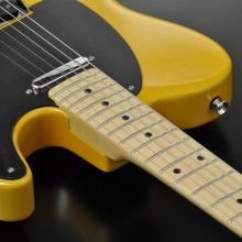 メイプル指板のモデルはピックガードが1プライ仕様であり、ブリッジサドルにはブラスを使用しました。ローズ指板のモデルはピックガードが3プライ仕様であり、BLKカラーはべっ甲柄ピックガードを使用しています。