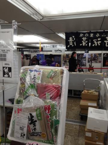 このブログをご覧のマニアな皆さまには少し物足りない展示かもしれませんが、ウィークデーの帰り道、新宿にお立ち寄りいただいて松本産のギターをさらっと眺めつつ、お家のお土産に信州の味覚を選んでみてはいかがでしょうか。