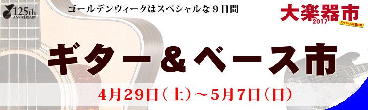 山野楽器仙台店様では4月29日から5月7日までの9日間に渡って、各社各ブランドのエレキギター、エレキベース、アコースティックギターが勢揃いする「大楽器市2017」を開催予定!
