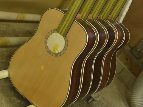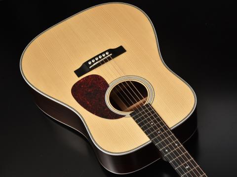 こちらはアドバンスドリアシフトブレイシングを採用したモデルであり、トップ材にジャーマンスプルースを採用した40周年記念特別モデルです。アディロンダックスプルースとは違った質感の粘りとハリのある上品なサウンドが特徴的です。