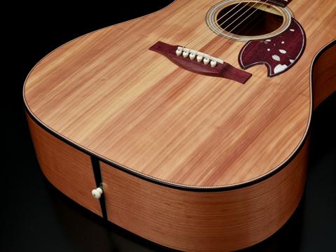 サイドバック材には長野県松本産の桜材「ソメイヨシノ」を採用しています。明るいトーンに乾いたサウンド、低音と高音のバランスがよく、メイプルよりもオープンな音が特徴です。