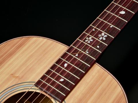 トップ材に使用している長野県松本産の「アロマティックシダー」は独特な木目が非常に魅力的で、桜のデザインとも相性が良く限定モデルにふさわしい1本に仕上がりました。