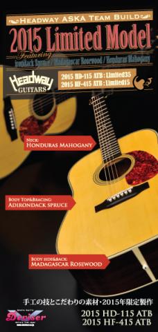 公開時期 2015/12/13 Introduction 2015年限定のHD-115 ATBとHF-415 ATBを掲載したコンパクトなパンフレット A4三つ折 フルカラー 2015 HD-115 ATB パンフレット Brand Headway Guitars Aska Team Build series 作成者:dev-web3 作成日:2015/12/22(火) 15:22
