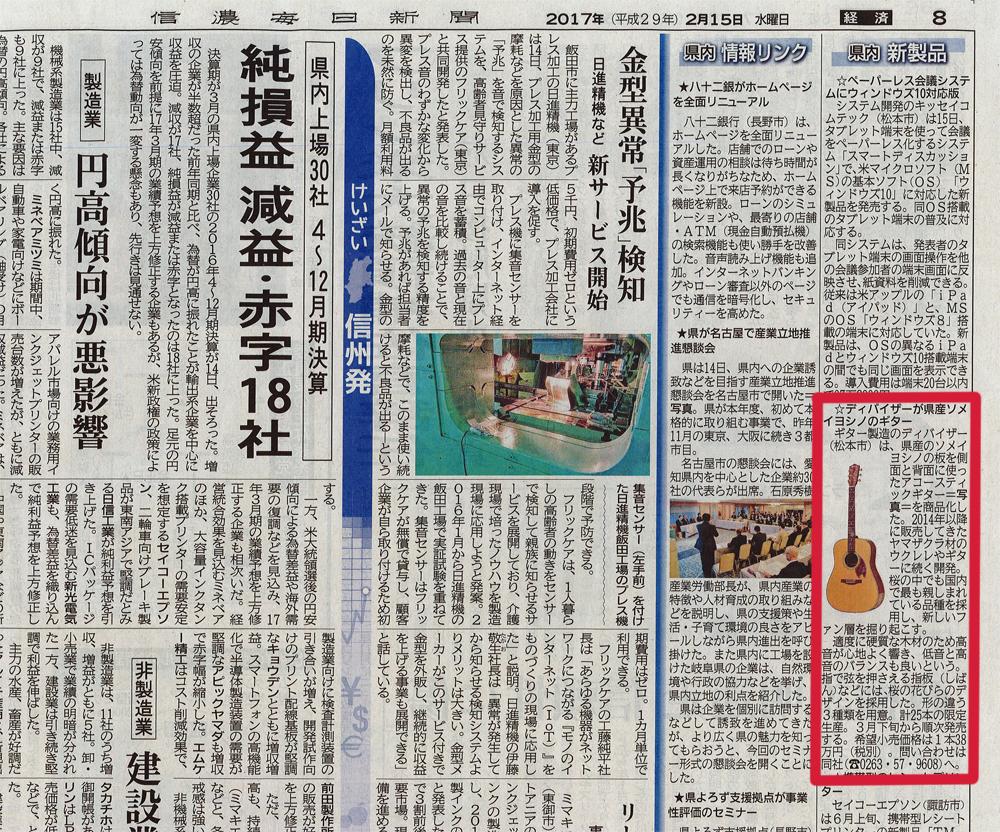 2017年2月15日発行の地方新聞”信濃毎日新聞”にHEADWAY Aska Team Buildのモデルが掲載されました。